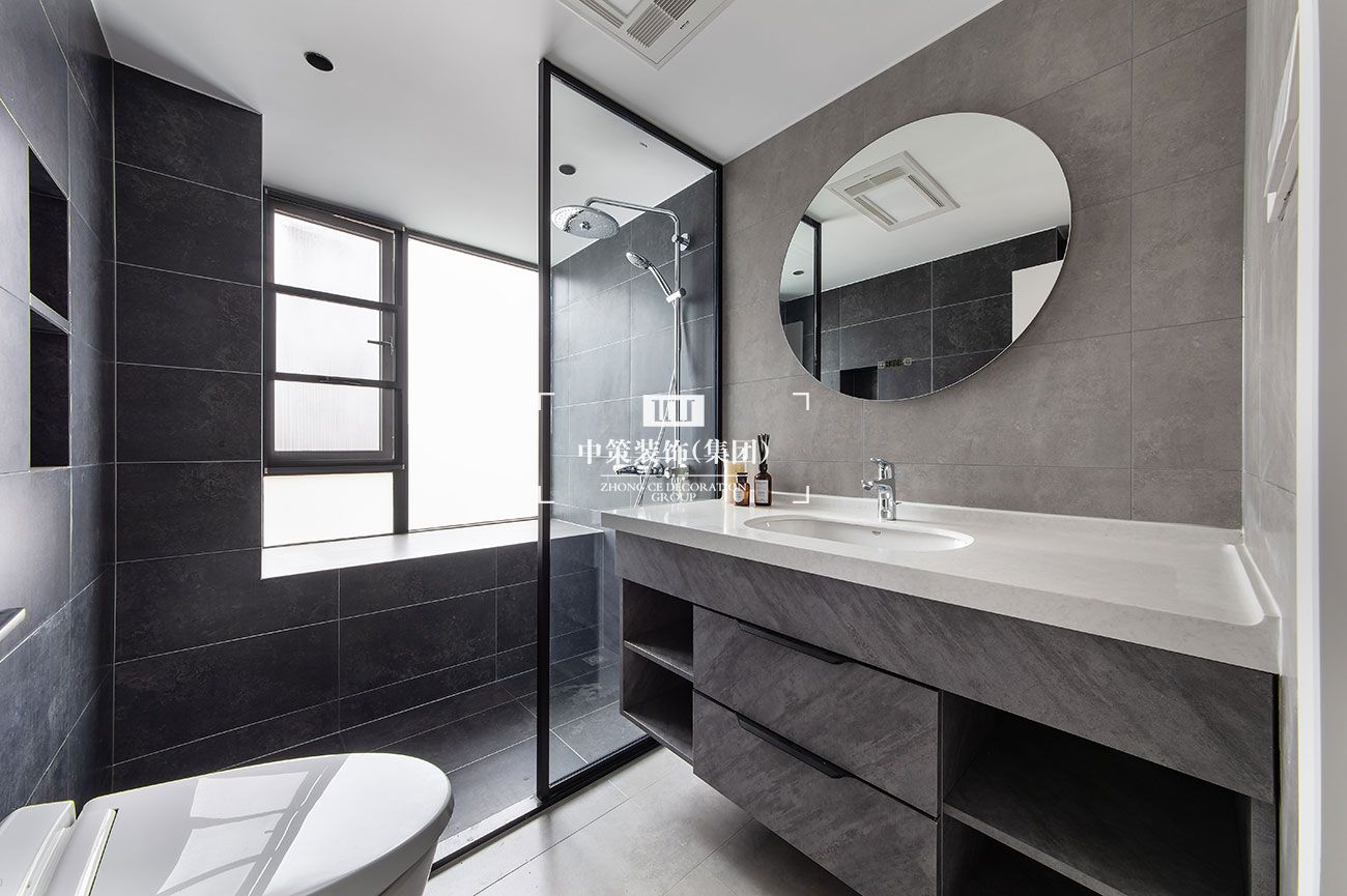 在空间色彩及材质选择上利用地面及顶面的材质过渡进行空间功能的划分,既不影响通透性又能在视觉效果上有明显的区分,黑白灰的搭配让现代简约风格增添经典的元素色彩。