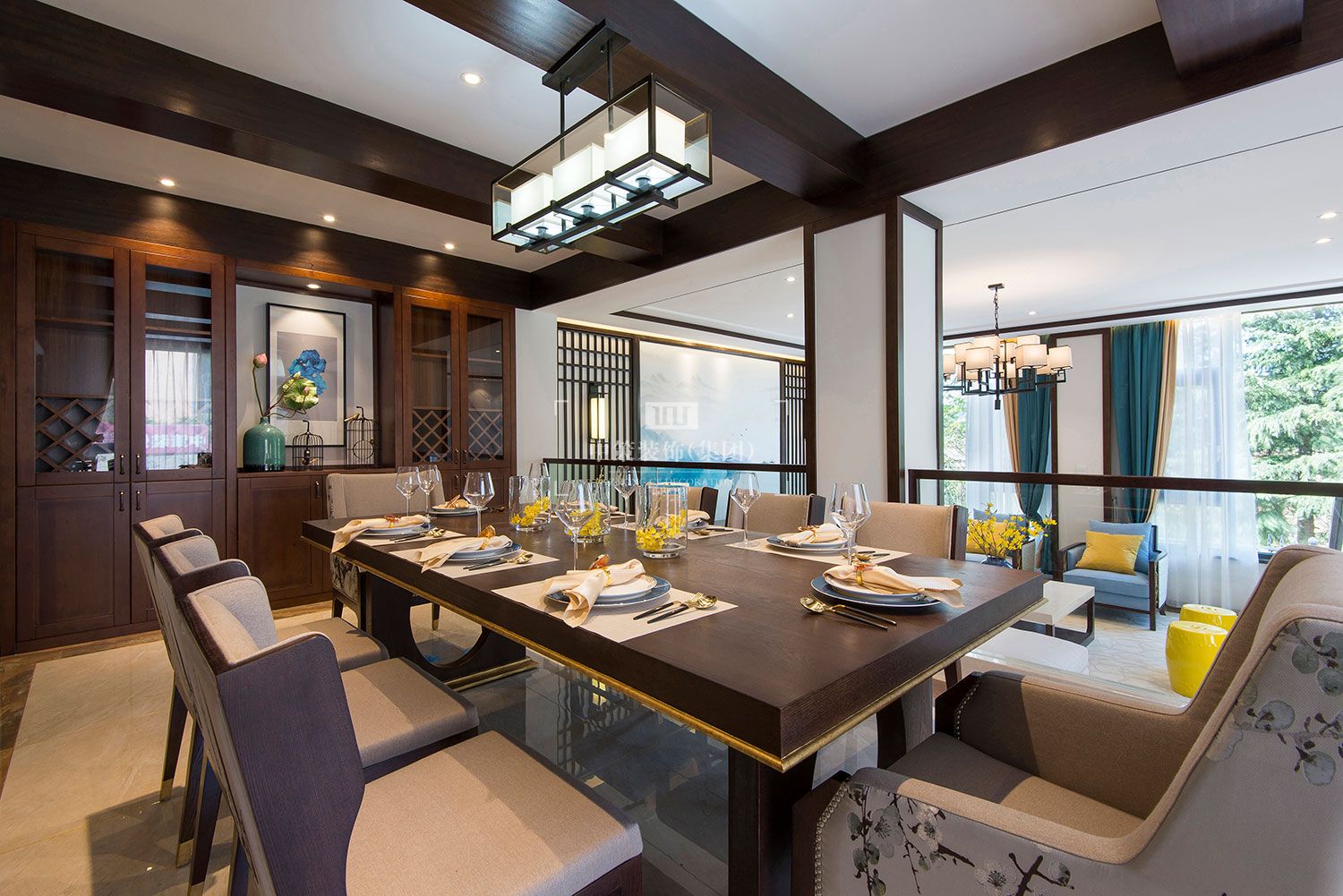 设计中将尊贵的宝蓝色,运用于充满现代中式的家居中,带来了耳目一新的感受。