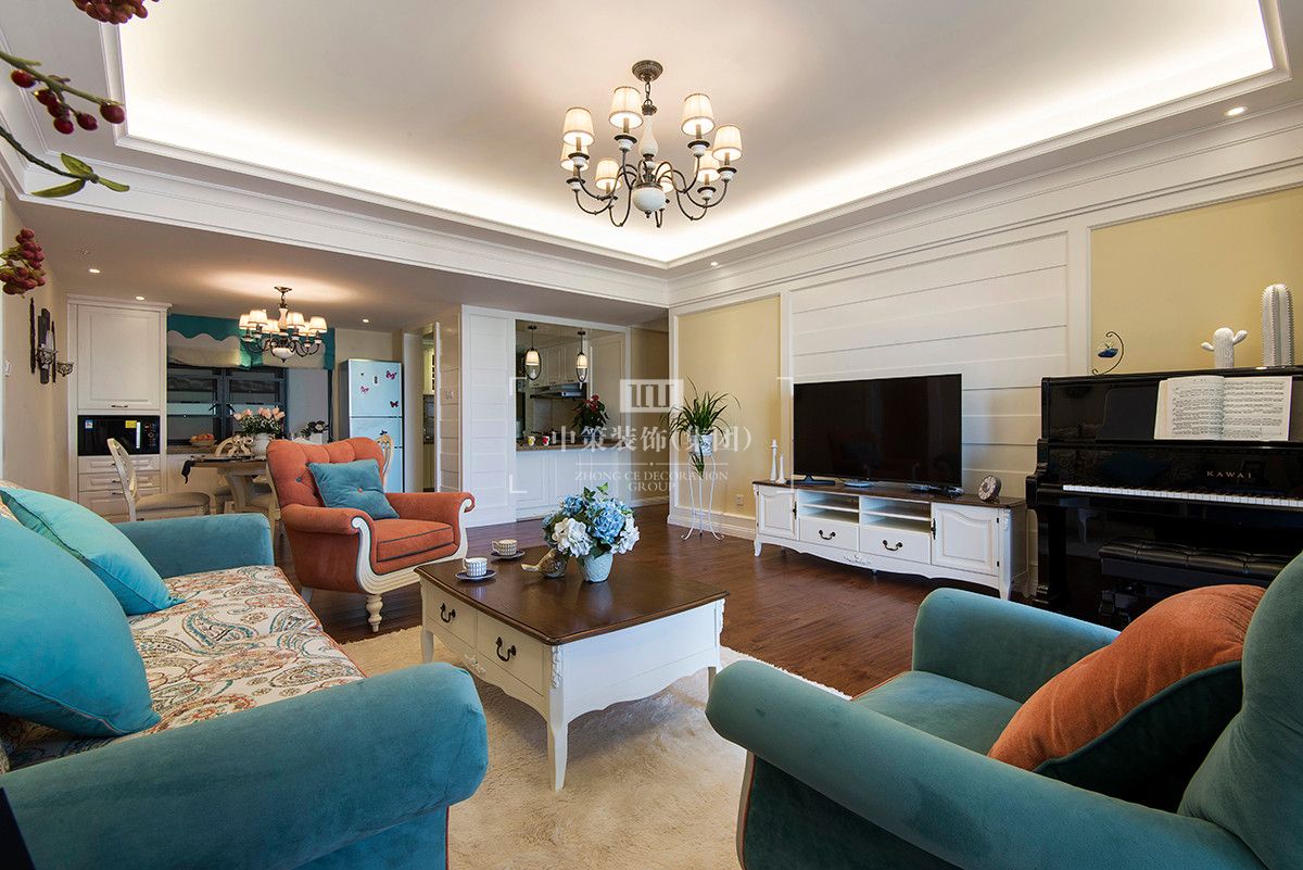 本案是当下非常流行的小户型家居设计。现代美式摒弃了巴洛克和洛可可风格所追求的新奇和浮华,建立在对古典全新的认识,强调简洁、明晰的线条和优雅、得体有度的装饰,毫无多余累赘之感。这些元素迎合当代人们的生活需求,既有文化感、有贵气感,还不缺乏自在感与情调感。强调空间交流氛围,增加家人之间互动关系,这一点在开放通透的餐厨区体现尤为明显。