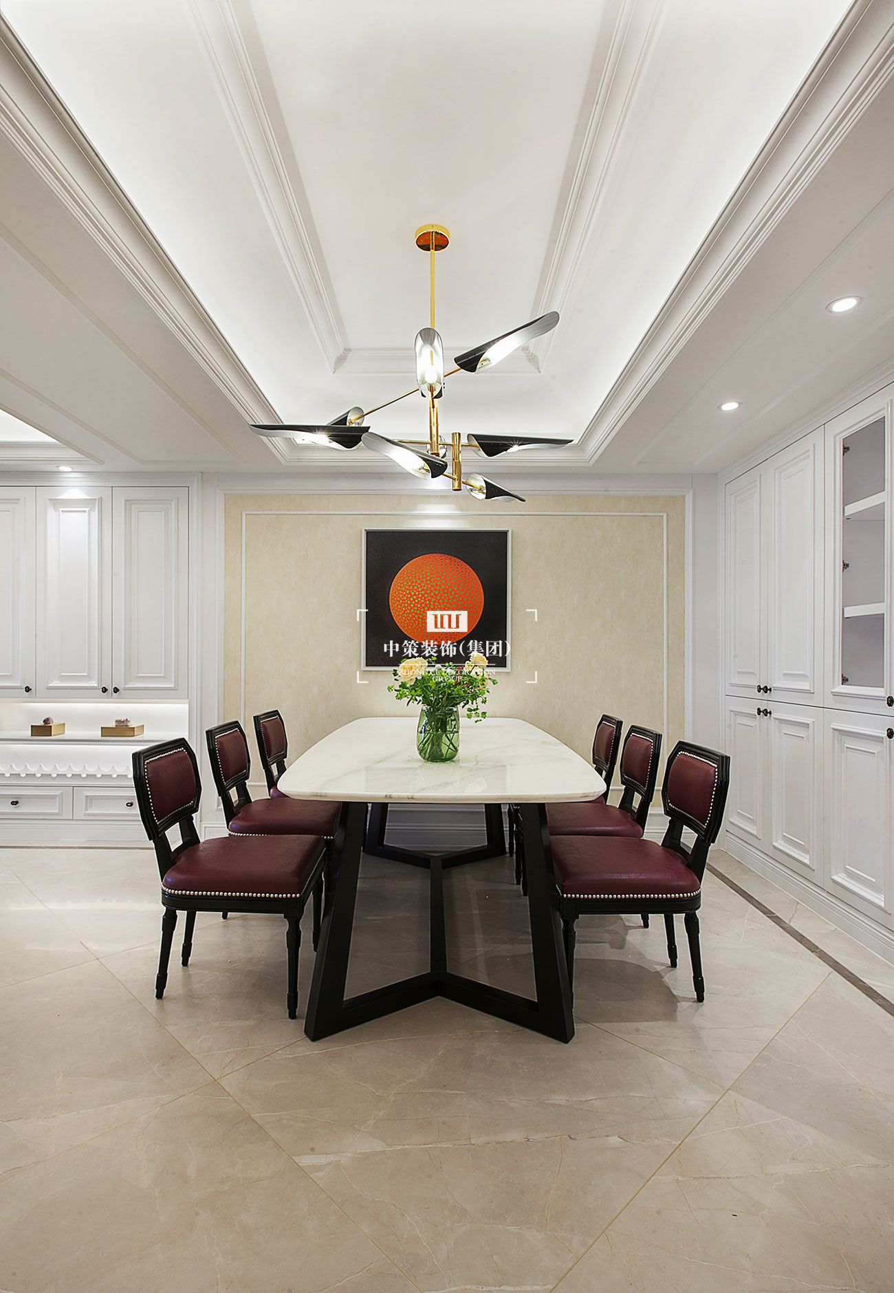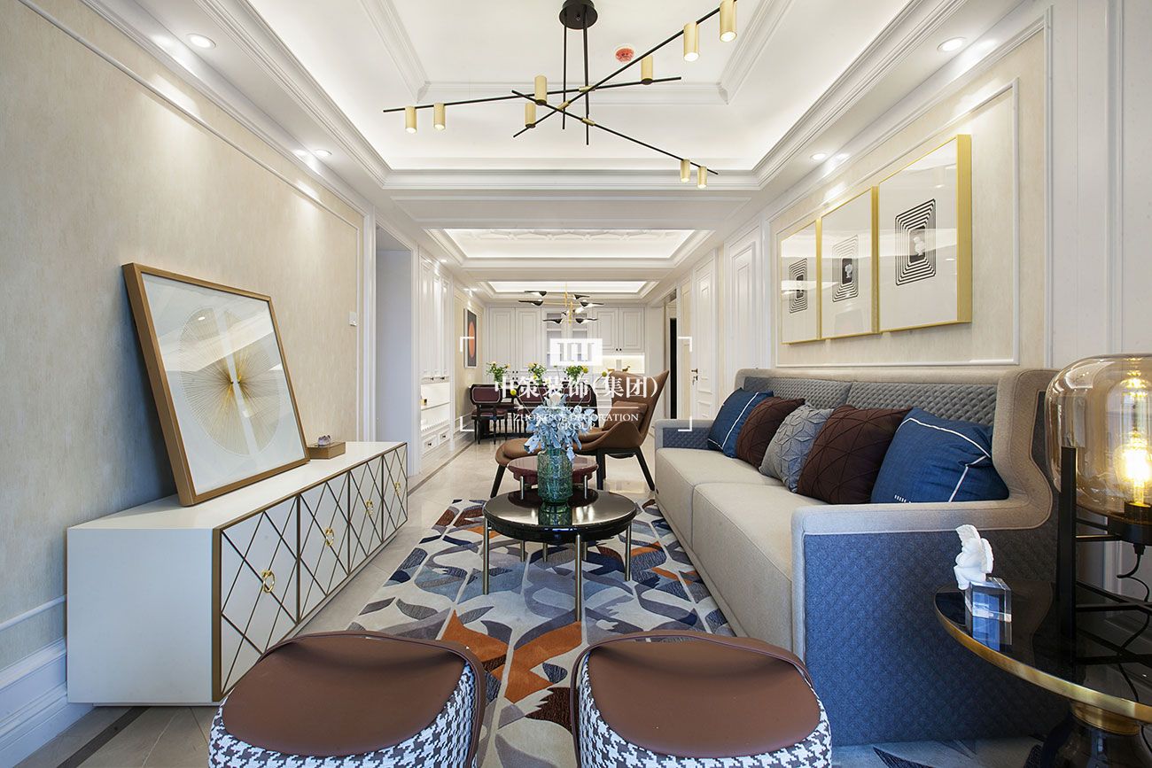 欧式线条和细节处理给人带来舒适感,营造出浪漫的意境。房门和柜门的凹凸造型,让空间充满趣味。点面式的灯光照明,置身其中,倍感温馨舒适,让经常住地州的业主回昆明后,也能感受到住家的舒适。家居配饰上,选用现代感强烈的家具组合,打造明快的居家氛围。挂画采用金属边框的抽象画,与西方艺术产生呼应。